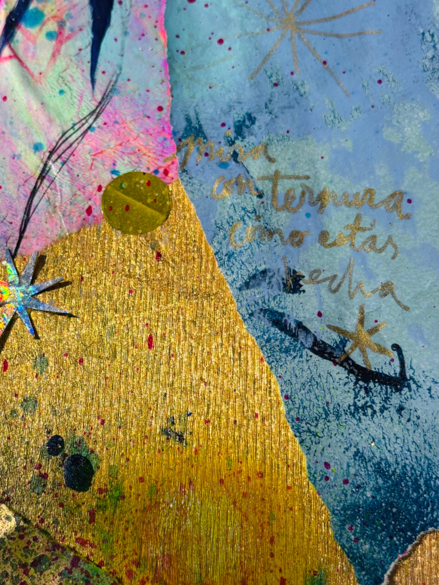 TÉCNICA: Papeles reciclados, spray, graffiti, collage, ilustración con bolígrafo, acrílico y trabajo de texturas.